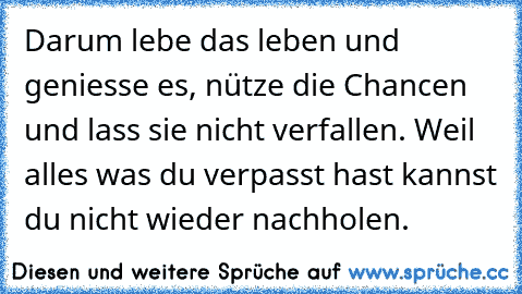 More @ http://www.xn--sprche-5ya.cc/darum-lebe-das-leben-und-geniesse-es-n%C3%BCtze-die-chancen-und-lass-sie-nicht-verfallen-weil-alles-was-d
