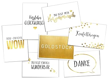 355 x 266 Goldene Postkarten 7 Er Set Mit Sprüchen Zu Liebefreundschaftglückwunsch Als Geschenk Oder Deko Hochwertige Din A6 Karten Mit Ganz Viel