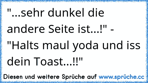 More @ http://www.xn--sprche-5ya.cc/die-dunkle-seite-ist-sehr-b%C3%B6se-sehr-sehr-b%C3%B6se-jaja-yoda-halt-die-schnauze-und-fress-dein-toast-xd