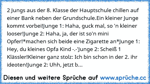 More @ http://www.xn--sprche-5ya.cc/2-jungs-aus-der-8-klasse-der-hauptschule-chillen-auf-einer-bank-neben-der-grundschuleein-kleiner-jun